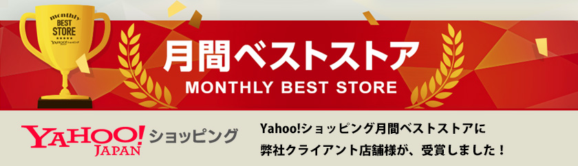 Yahoo!ショッピング 月間ベストストアは、お客様からの評価、売り上げなどを得点化して、上位3位までのストアを選定。